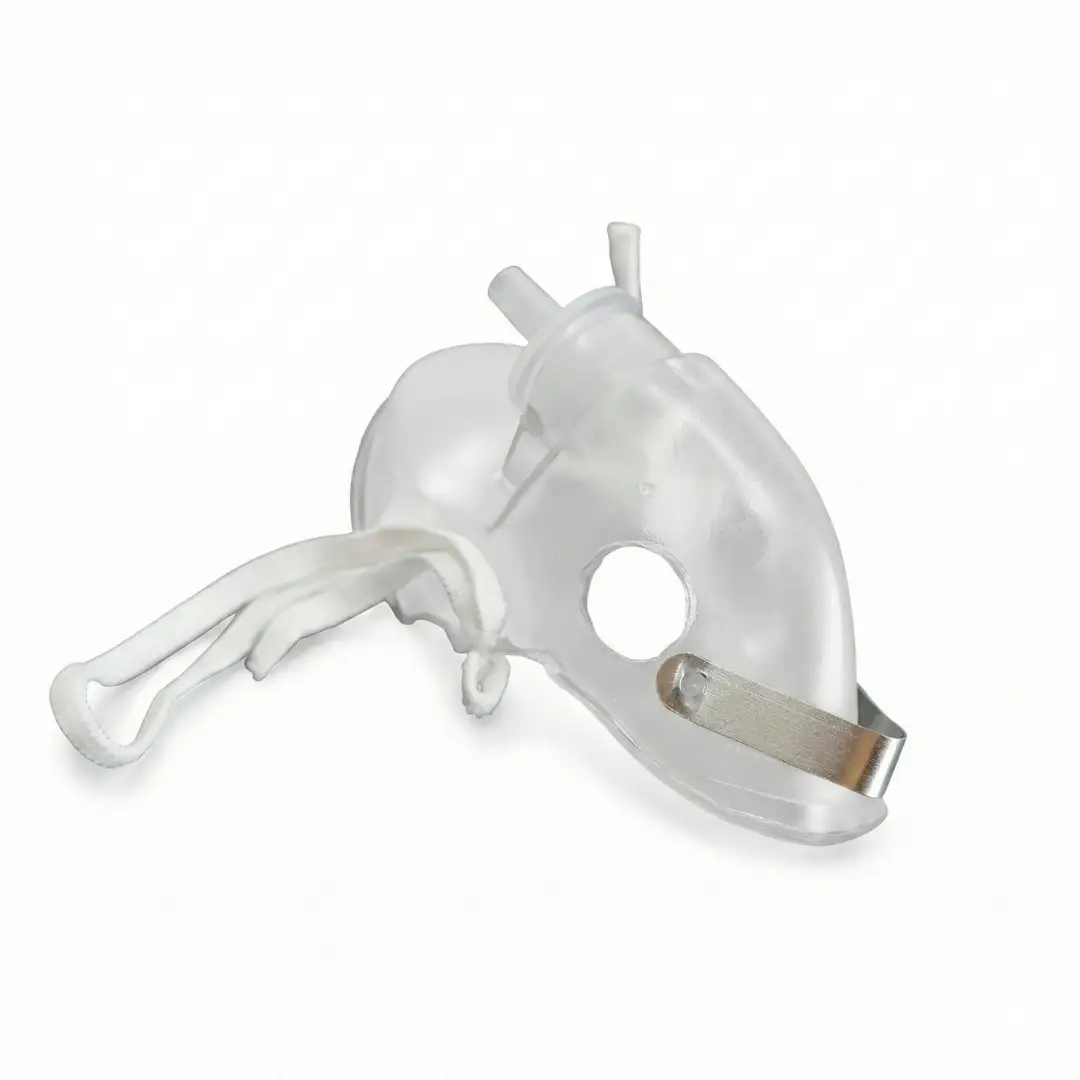 Les masques à oxygène sont des dispositifs conçus pour recouvrir la bouche et le nez, dotés de petits trous, qui permettent d’administrer de l’oxygène aux patients.